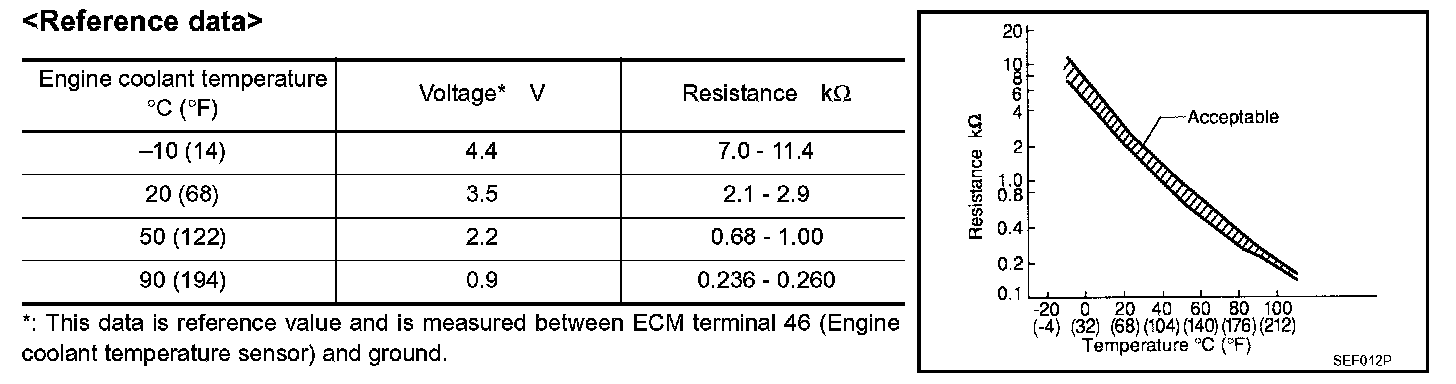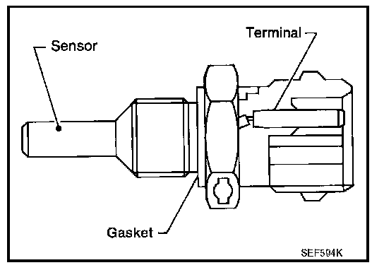 The engine coolant temperature sensor is used to detect the engine coolant temperature. The sensor modifies a voltage signal from the ECM. The modified signal returns to the ECM as the engine coolant temperature input. The sensor uses a thermistor which is sensitive to the change in temperature. The electrical resistance of the thermistor decreases as temperature increases.