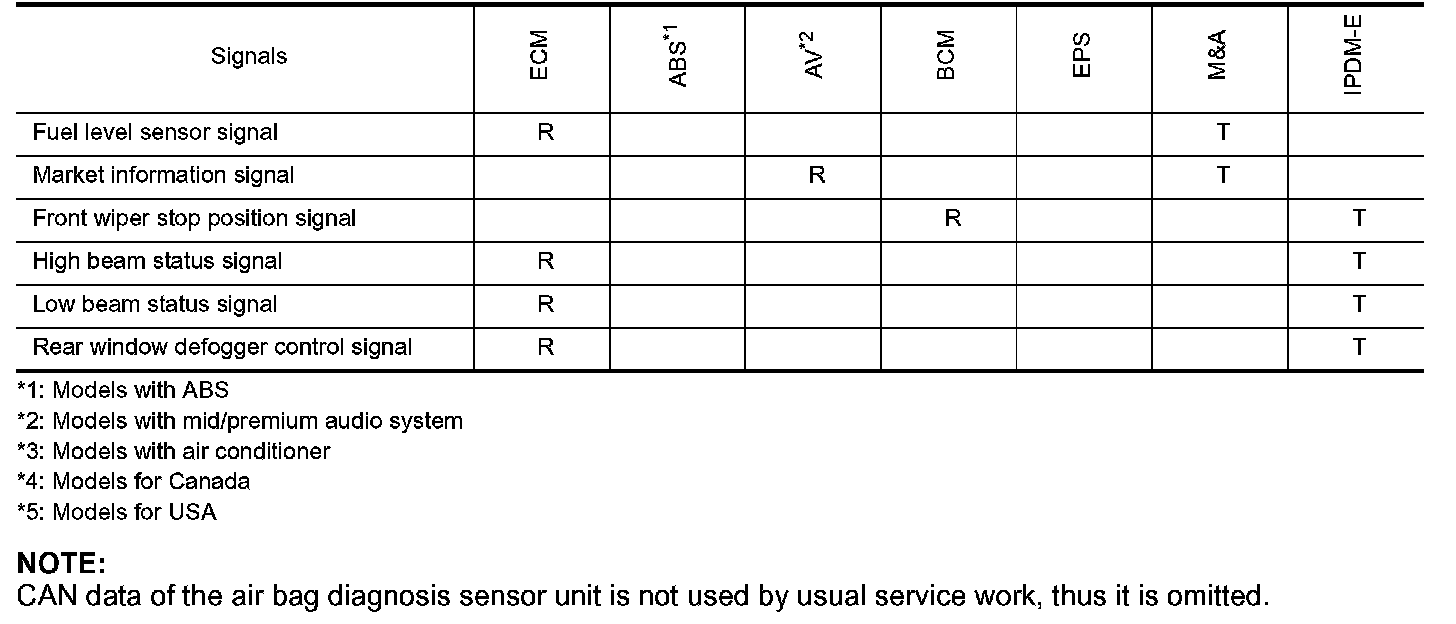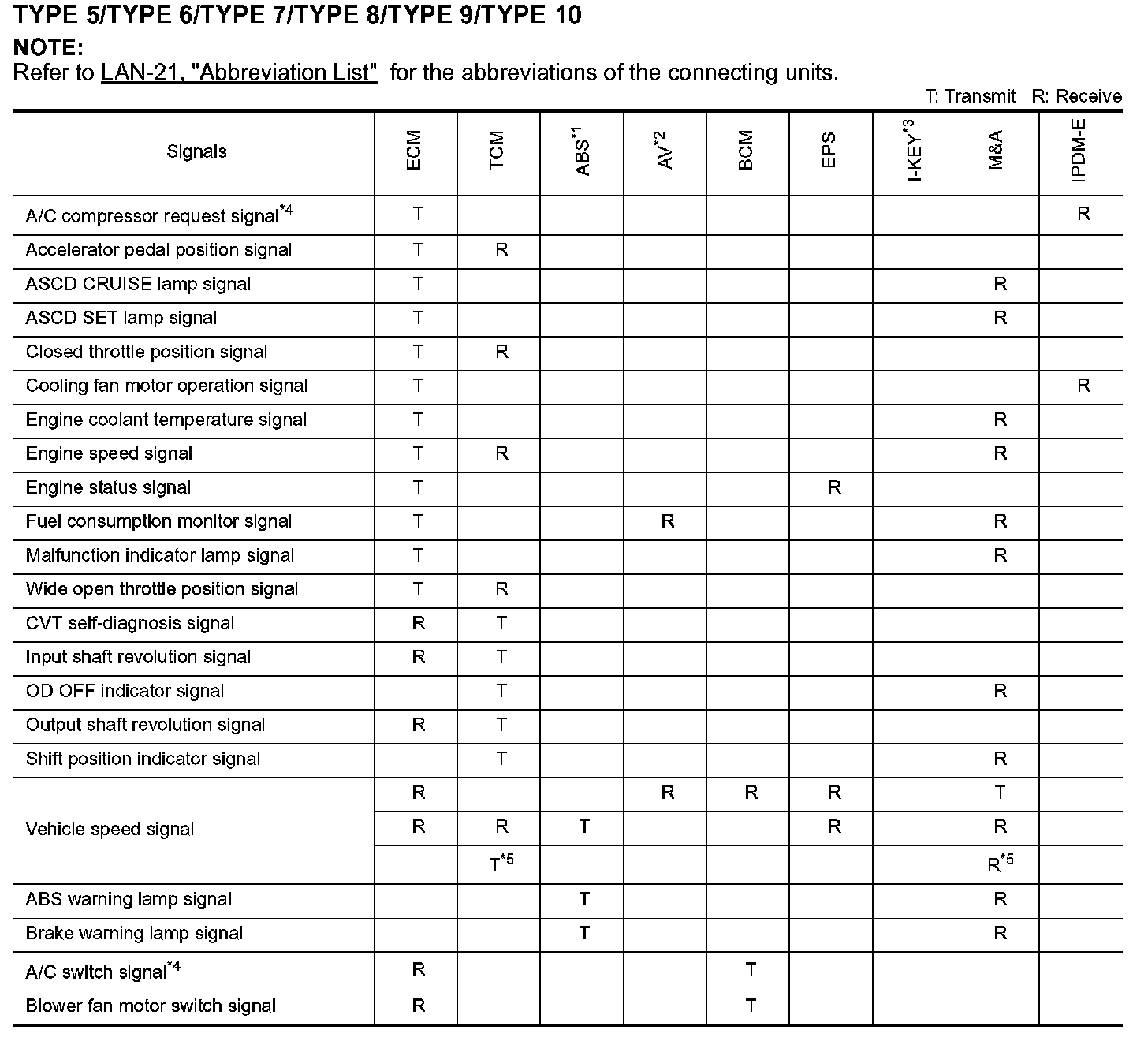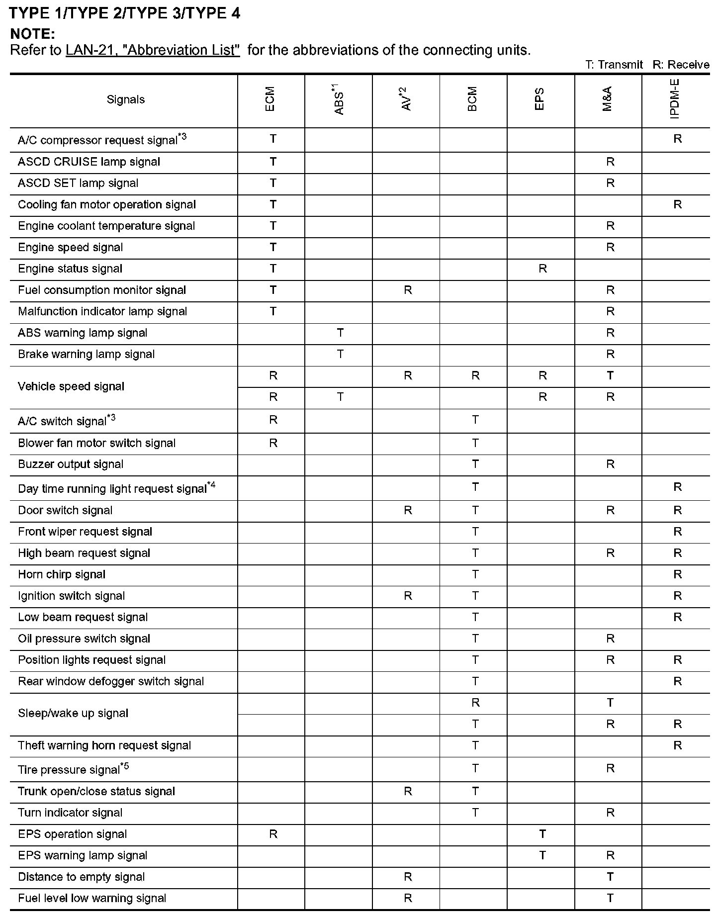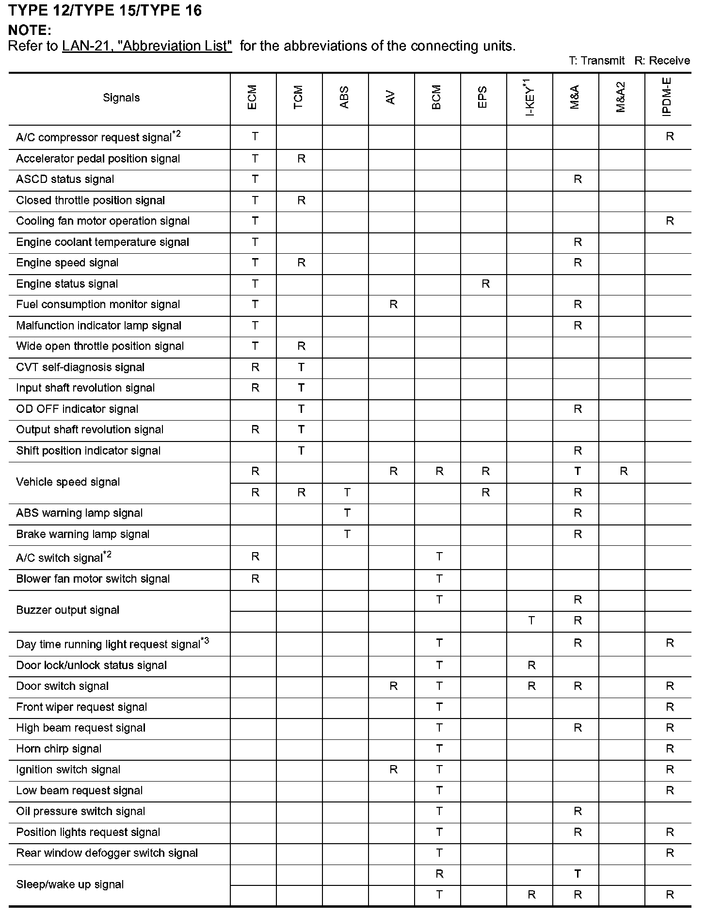 CAN Communication Signal ChartRefer to LAN-14, "How to Use CAN Communication Signal Chart" for how to use CAN communication signal chart. Trouble Diagnosis
