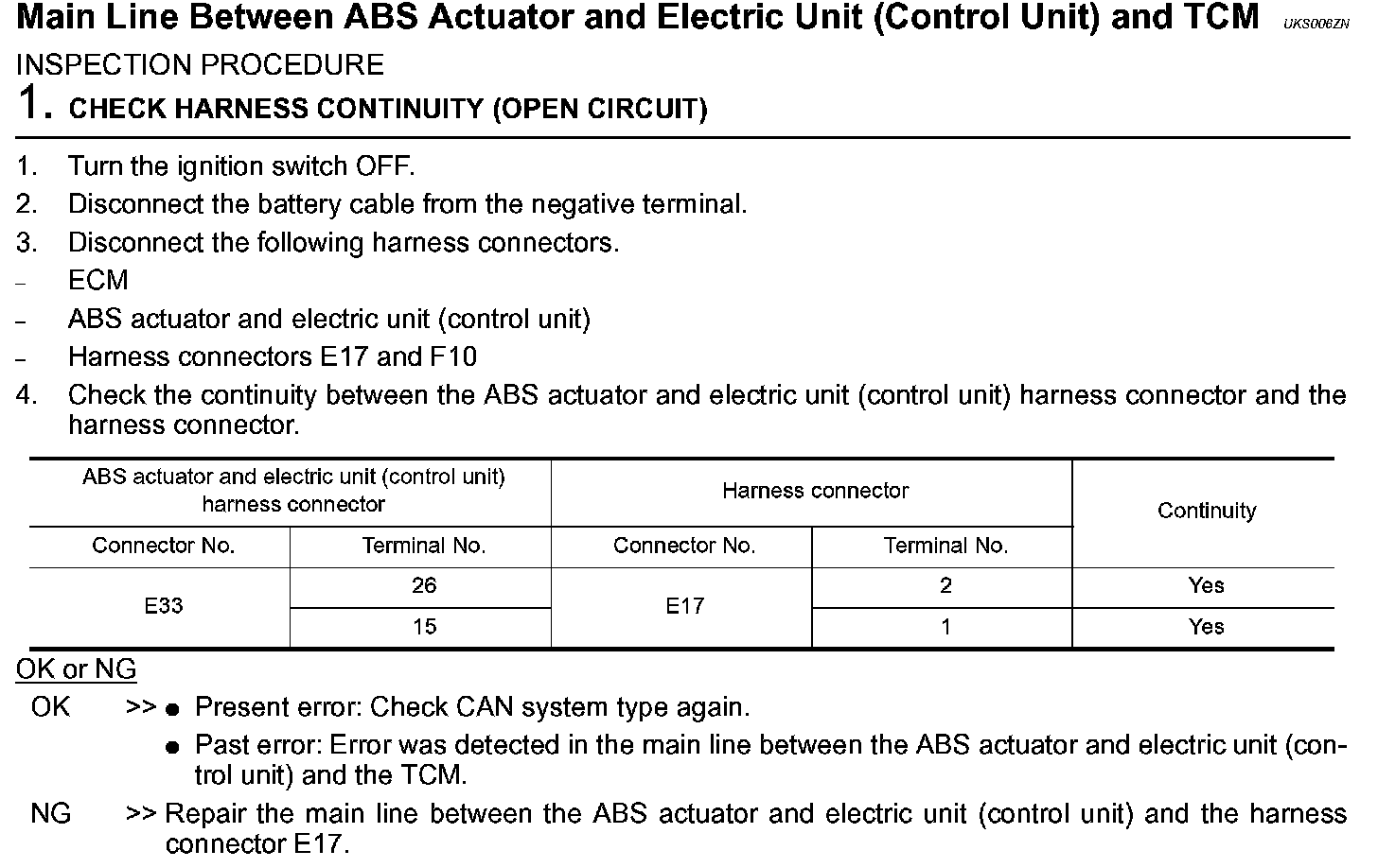 Main Line Between ABS Actuator and Electric Unit (Control Unit) and TCM