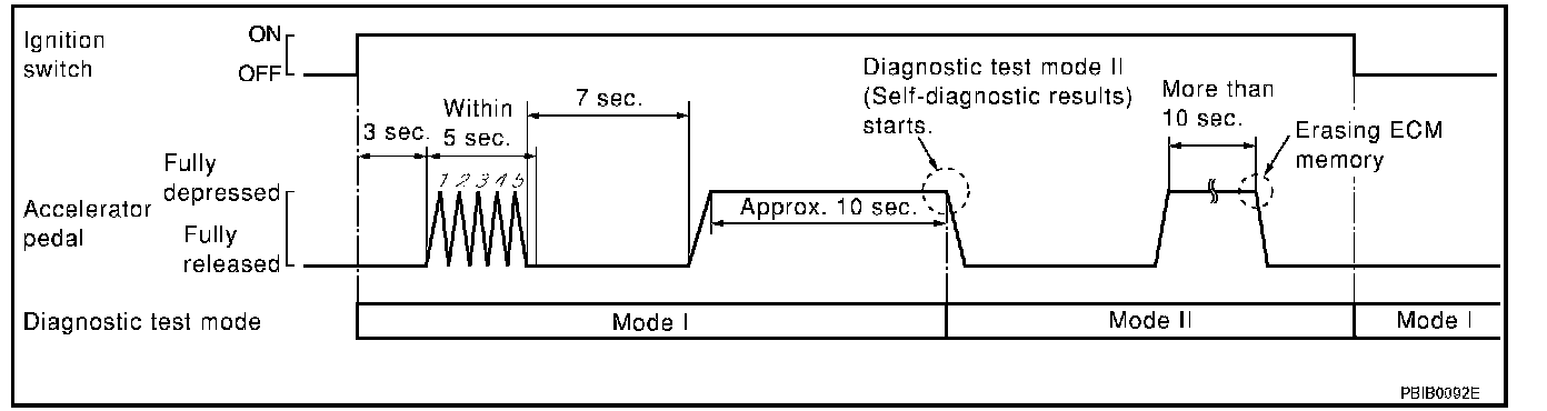 - Always ECM returns to Diagnostic Test Mode I after ignition switch is turned OFF.