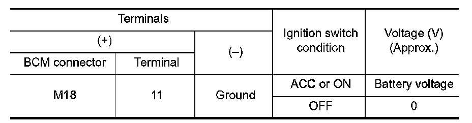 Check ACC switch ("ACC ON SW") in "DATA MONITOR" mode with CONSULT-III.