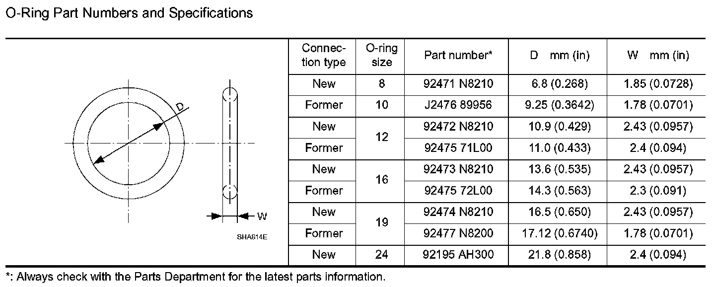 The new and former refrigerant connections use different O-ring configurations. Do not confuse Orings since they are not interchangeable. If a wrong O-ring is installed, refrigerant will leak at, or around, the connection.
