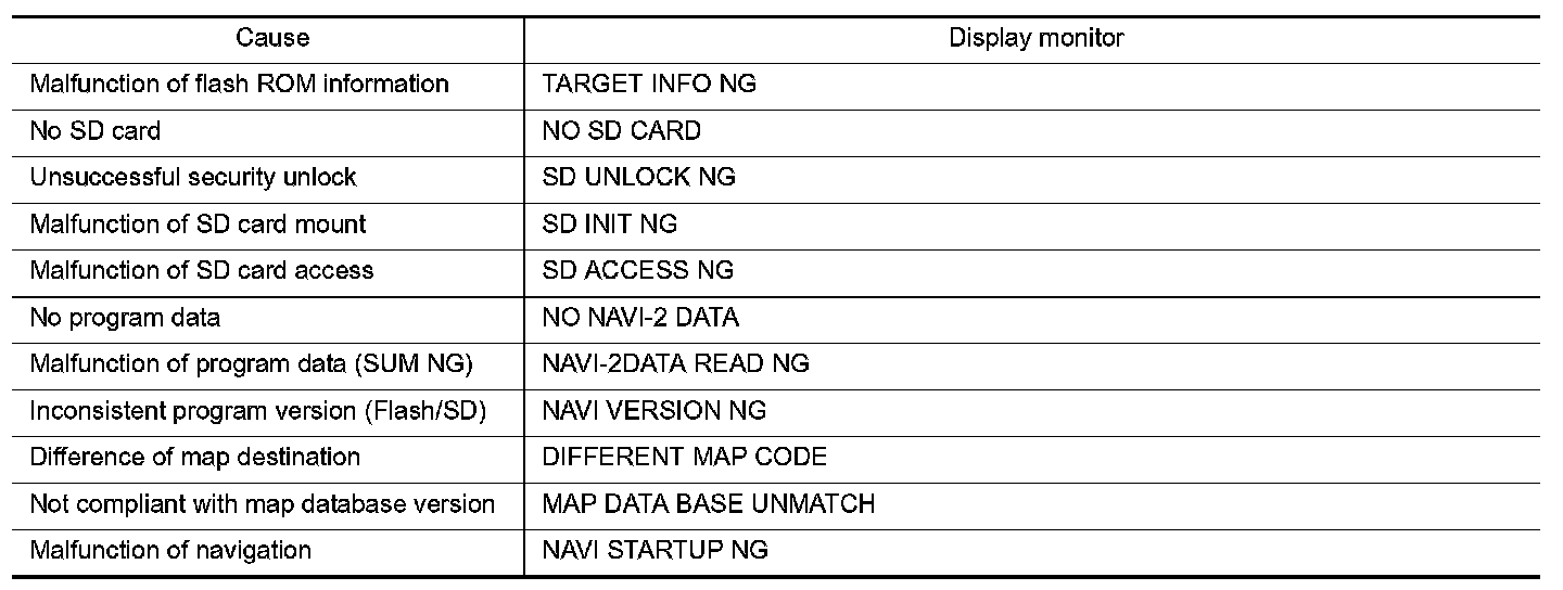 SD card not inserted, SD card malfunction, internal malfunction of navigation, etc.