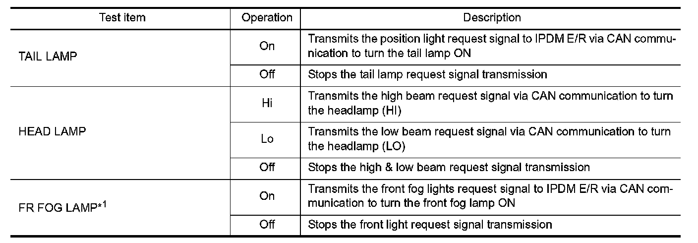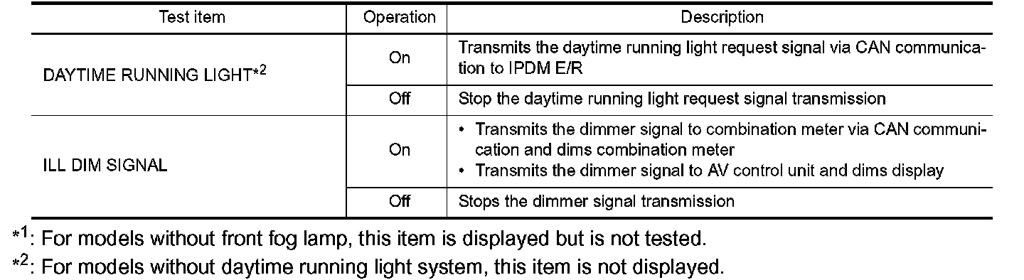 *: For models without front fog lamp, this item is displayed but is not tested.