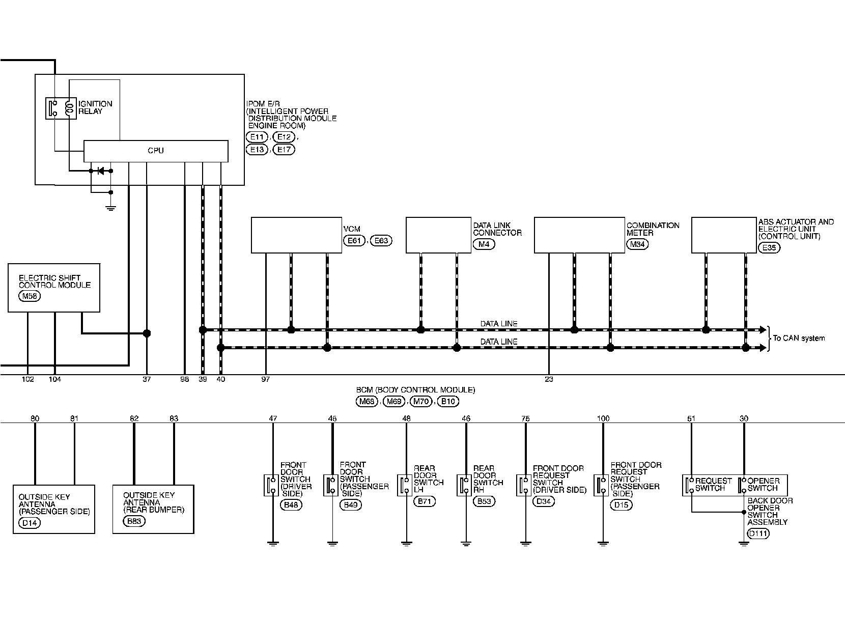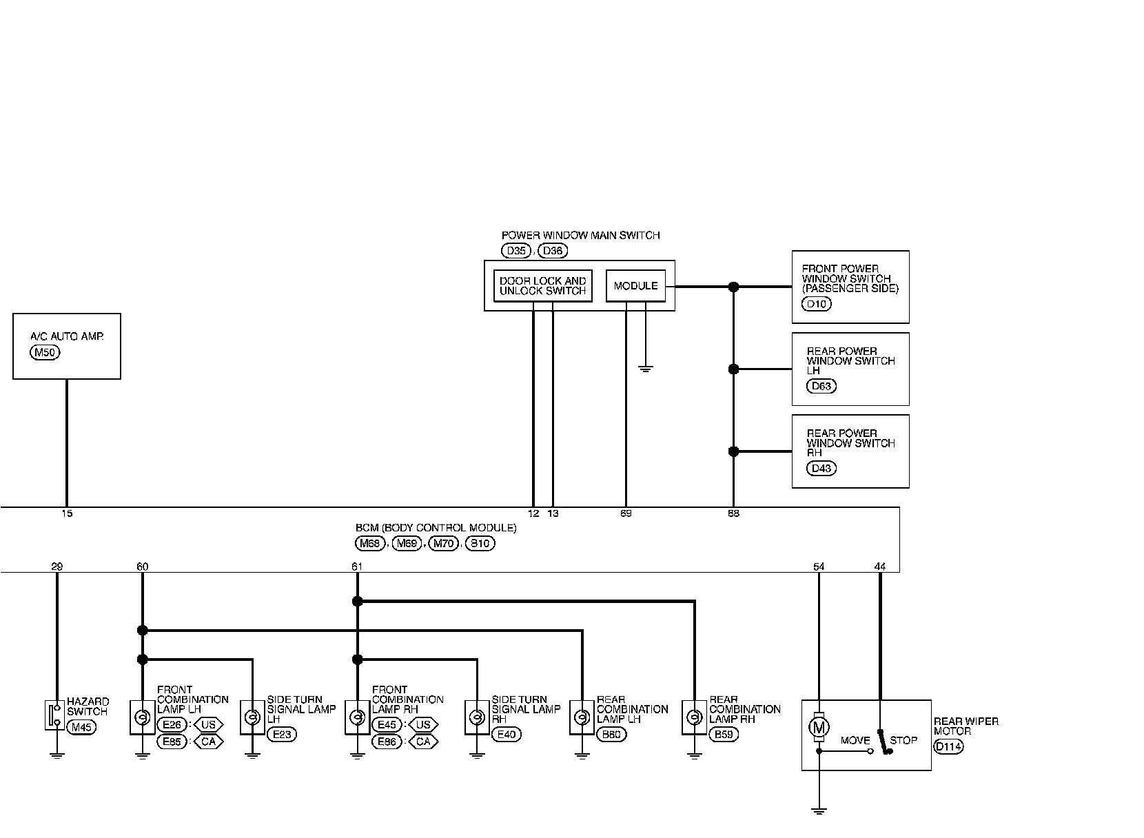 For connector terminal arrangements, harness layouts, and alphabets in a (option abbreviation; if not described in wiring diagram), refer to "Connector Information"