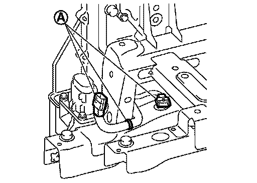8.Disconnect 12V system connector and harness clips (A).