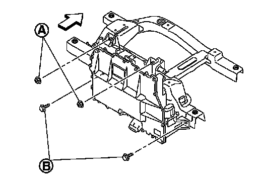 13.Remove DC/DC-J/B fastening nut (A) and fastening bolt (B).
