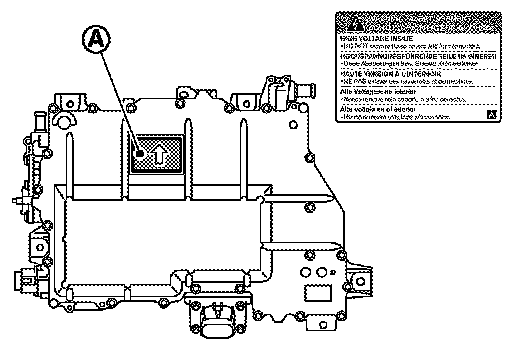 - If DC/DC-J/B was replaced, apply high voltage warning label at position (A), with the top facing in the direction of the arrow.