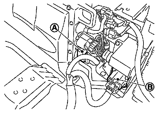 9.Disconnect high voltage harness connector (A) of on-board charger, and high voltage harness connector (B) of noise filter.