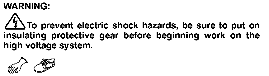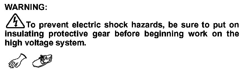-To prevent electric shock hazards, be sure to put on insulating protective gear before beginning work on the high voltage system.
