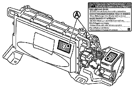 - If on-board charger was replaced, apply high voltage warning label at position (A), with top facing in the direction of arrow.