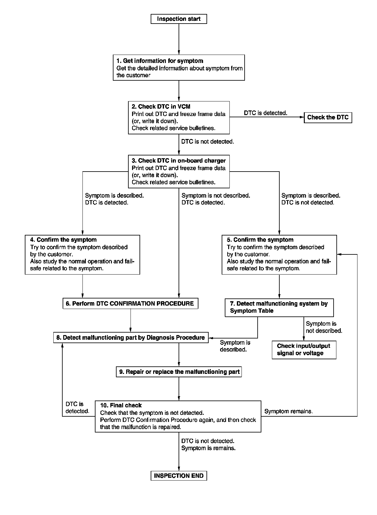 NO- Monitor input data from related sensors or check voltage of related on-board charger terminals using CONSULT. Refer to "Reference Value" Pinout Values and Diagnostic Parameters.