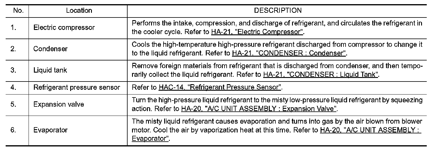 REFRIGERATION SYSTEM : Component Parts Location