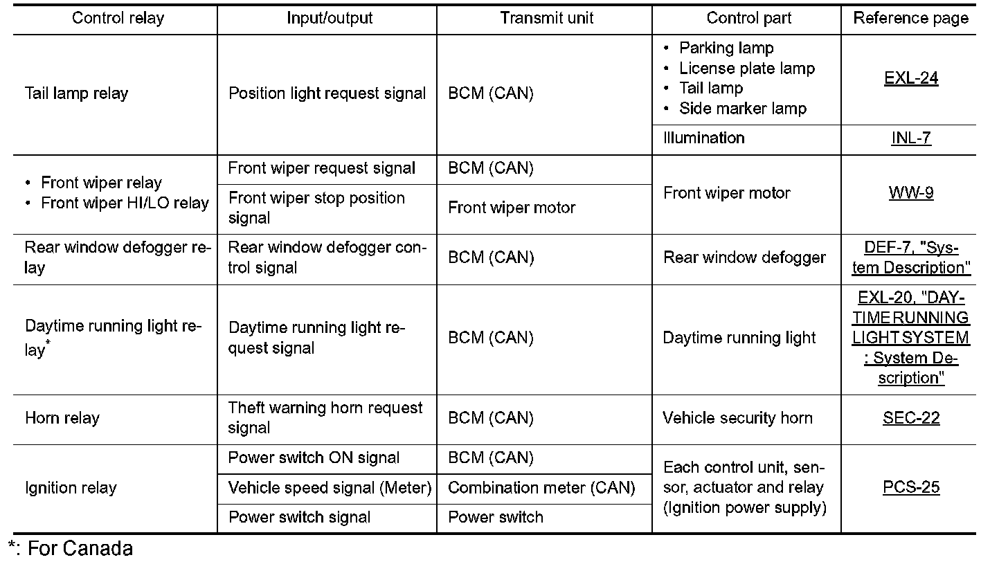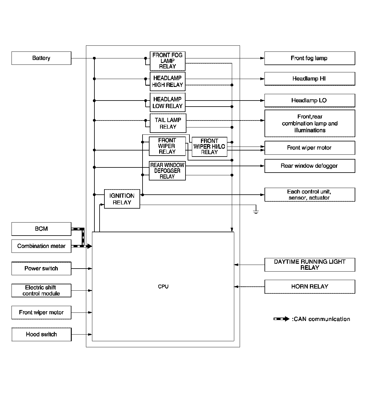IPDM E/R activates the internal control circuit to perform the relay ON-OFF control according to the input signals from various sensors and the request signals received from control units via CAN communication.