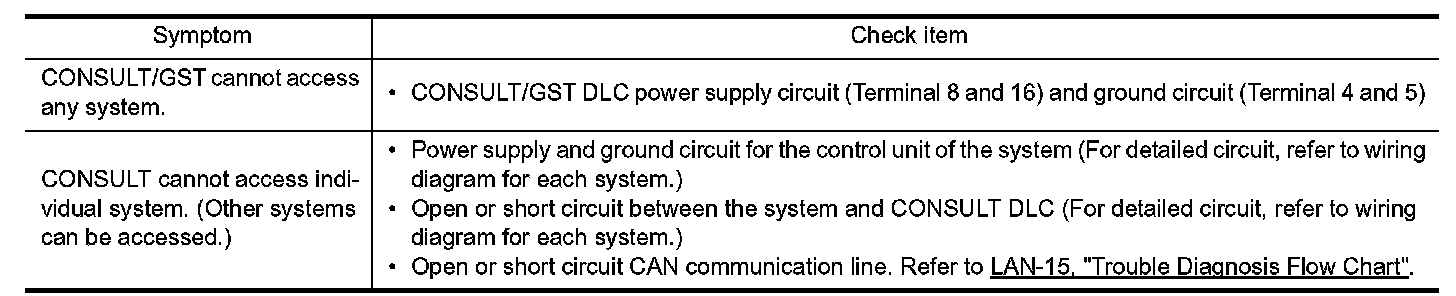 If the CONSULT/GST cannot diagnose the system properly, check the following items.