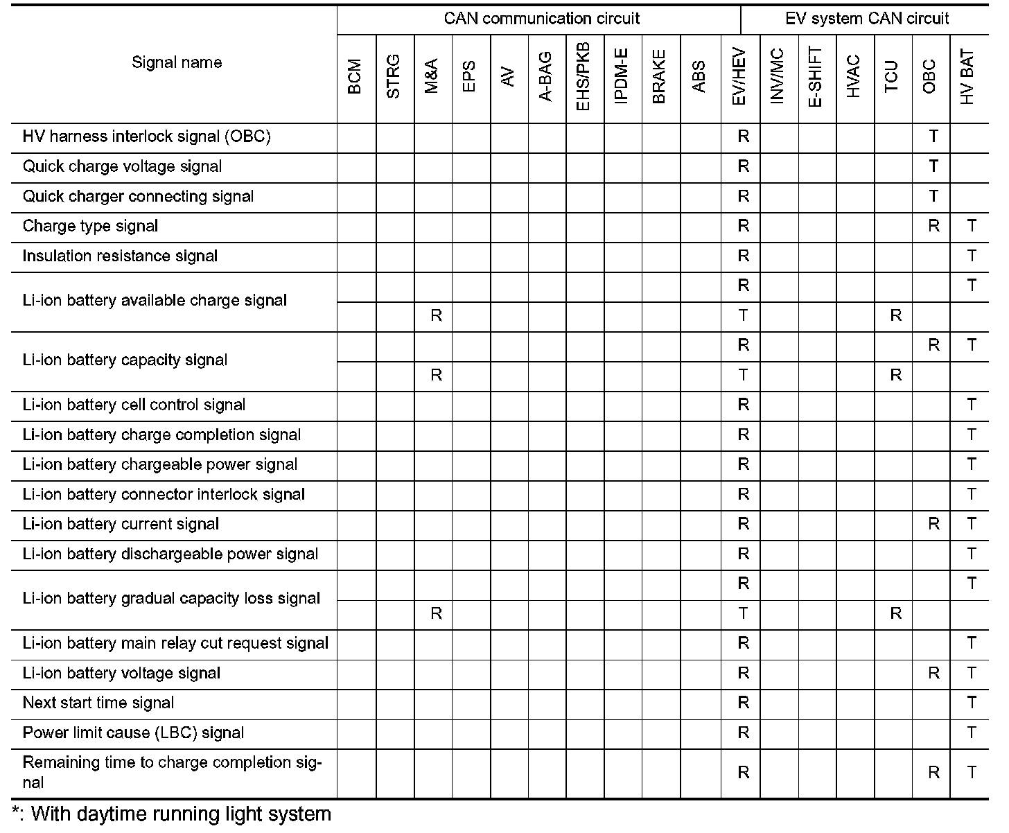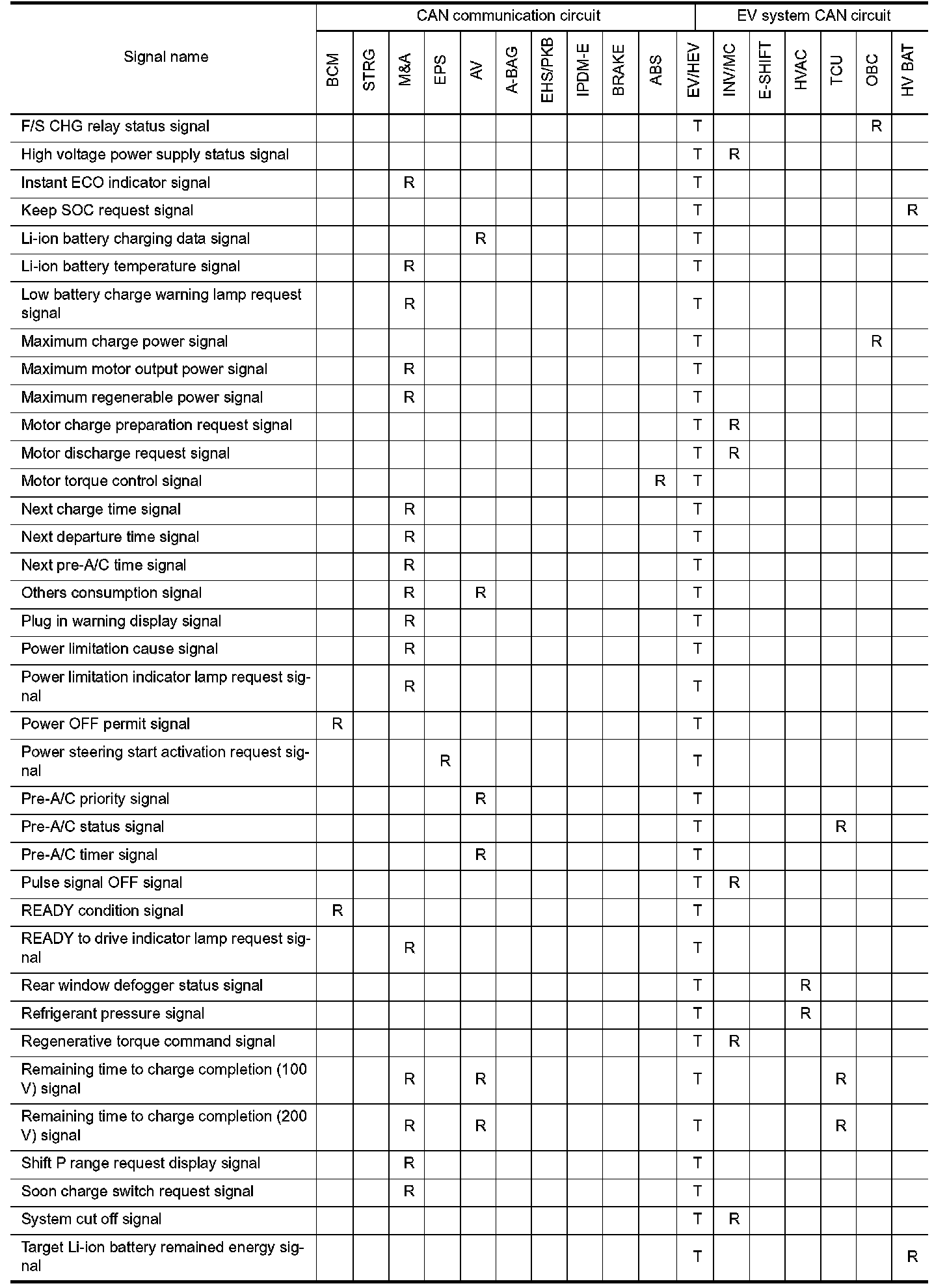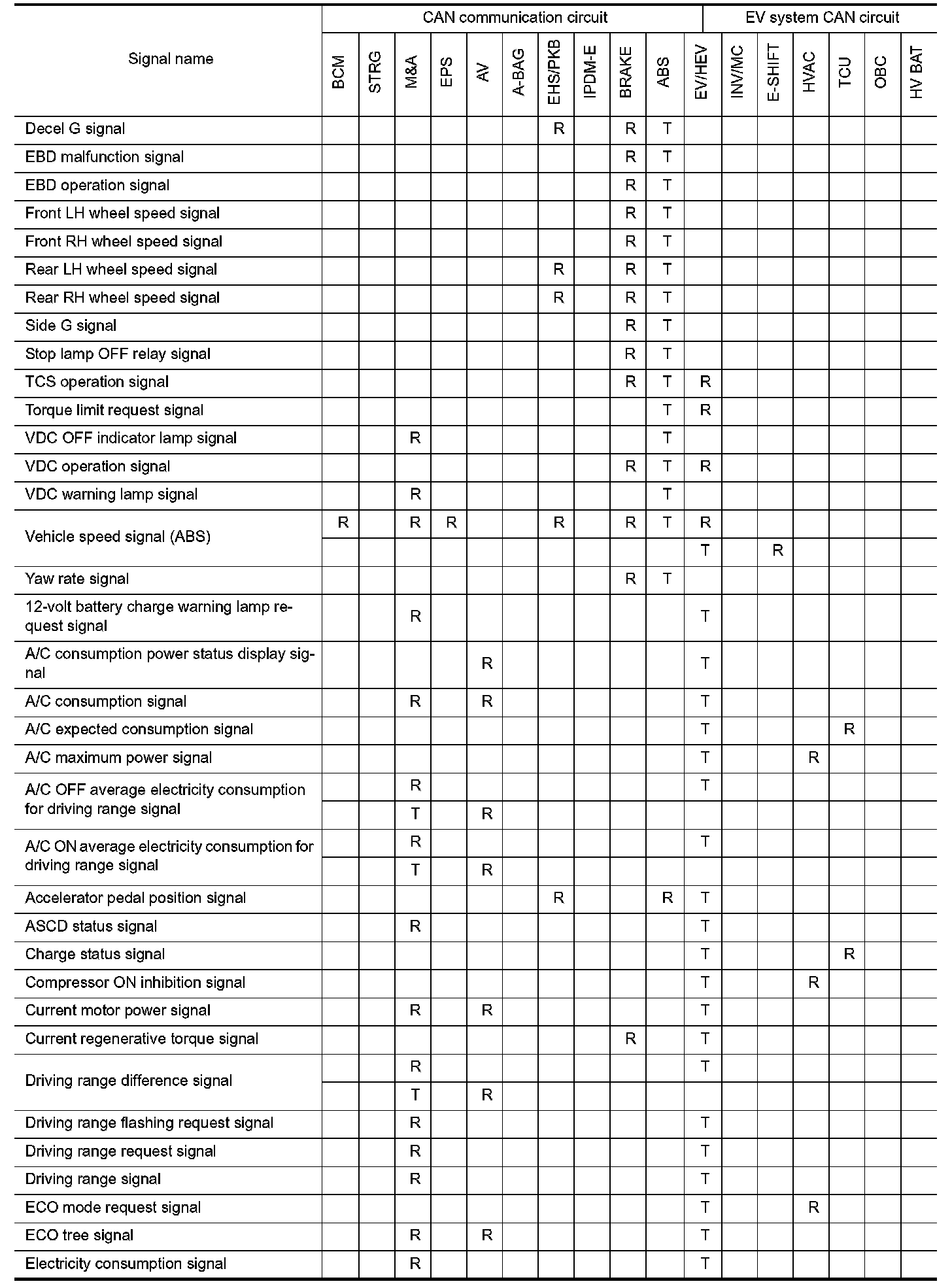 Refer to "How to Use CAN Communication Signal Chart" How To Use CAN Communication Signal Chart for how to use CAN communication signal chart.