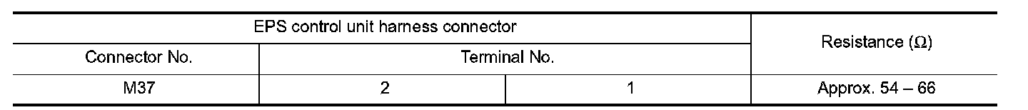 2.Check the resistance between the EPS control unit harness connector terminals.