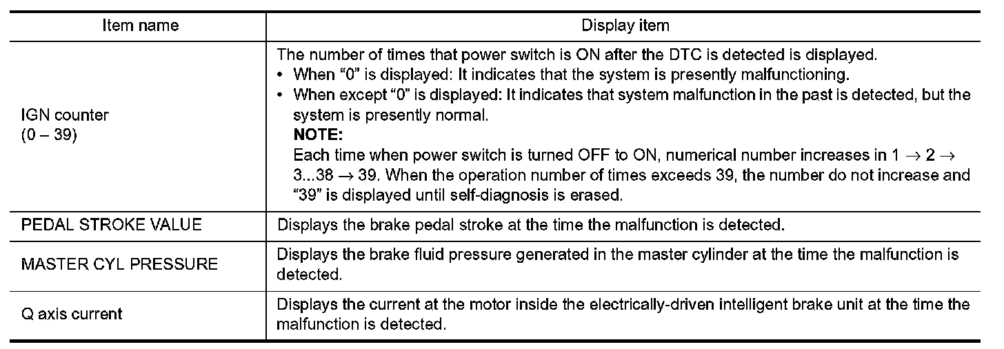 When DTC is detected, a vehicle state shown below is recorded and displayed on CONSULT.