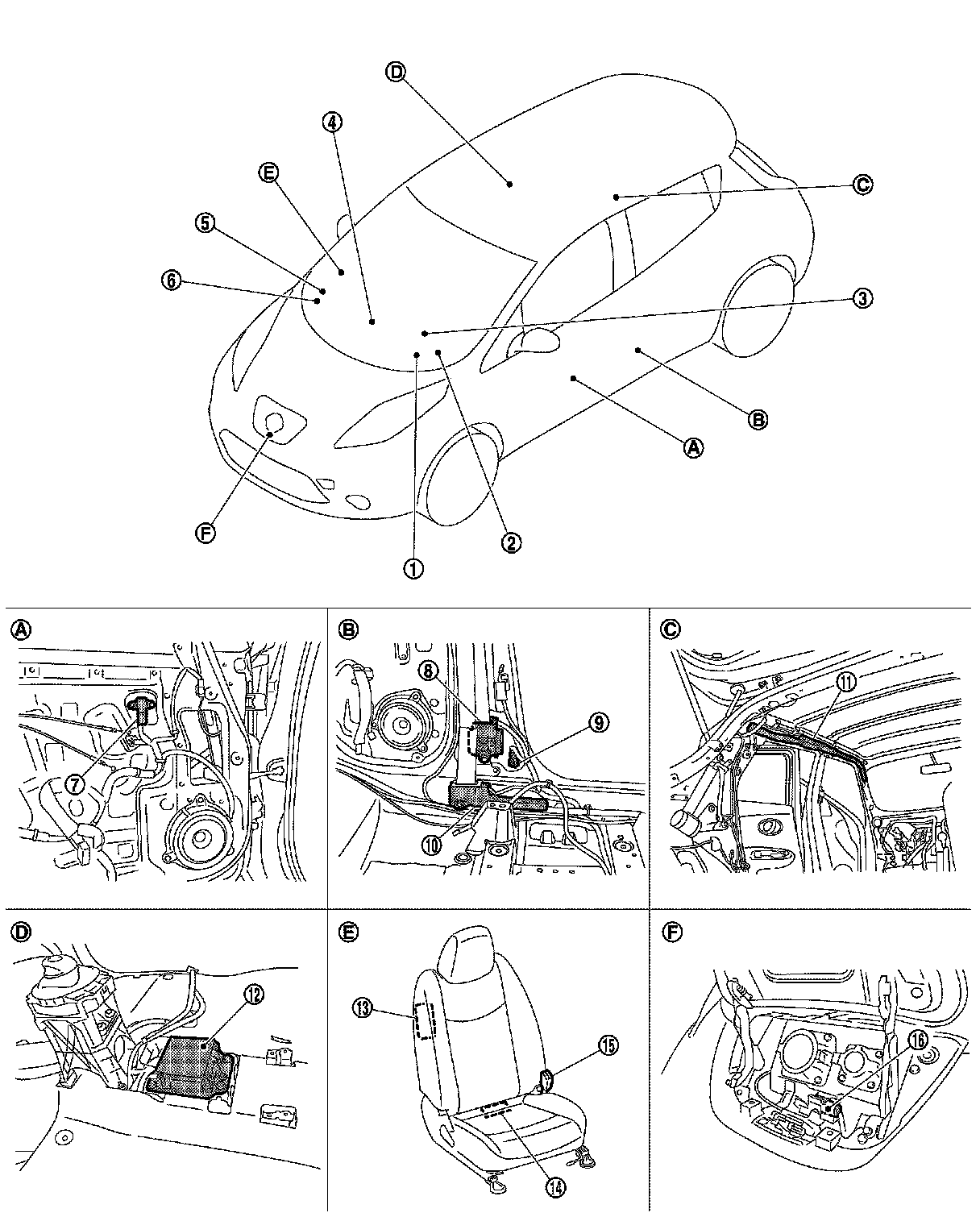 Air Bag Control Module: Locations