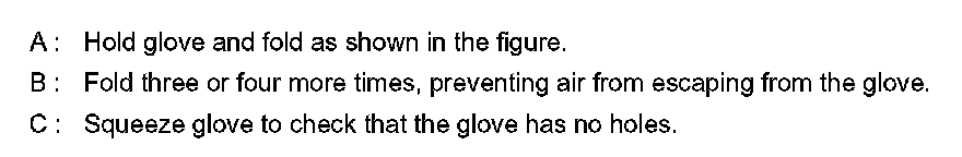 Inspect the insulated gloves for scratches, holes, and tears. (Visual check and air leakage test)
