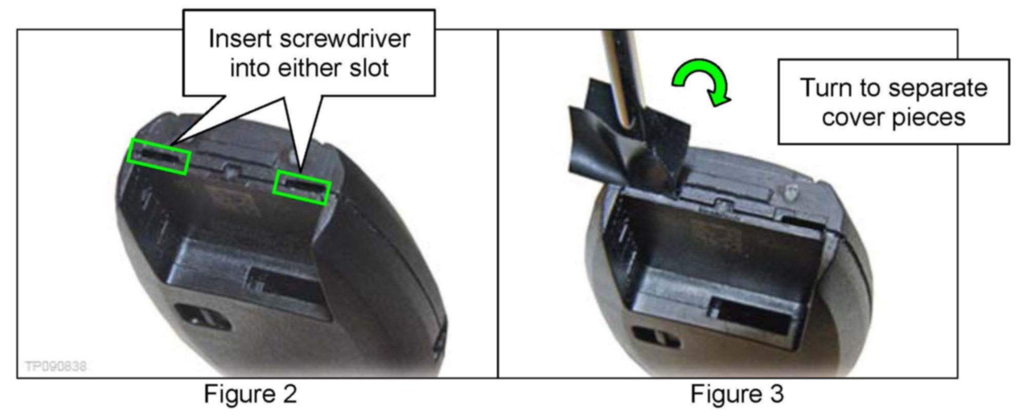 c) Insert the screwdriver into either of the slots shown in Figure 2.