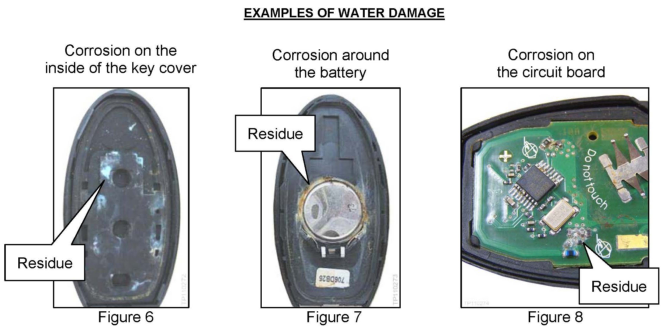 4. Inspect the inside of the Intelligent Key for signs of water intrusion.