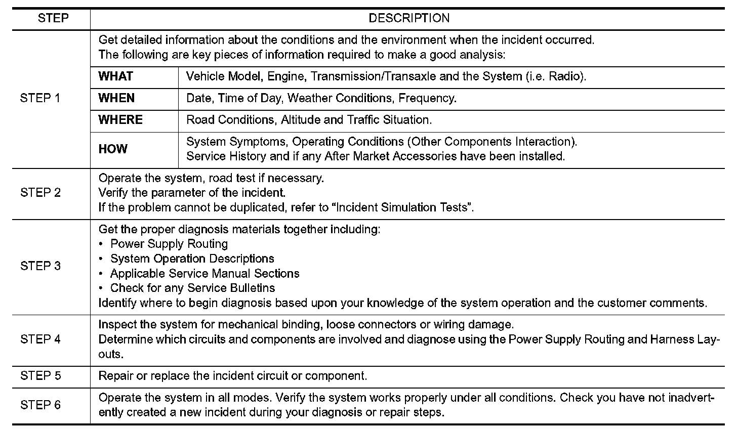 SERVICE INFORMATION FOR ELECTRICAL INCIDENT