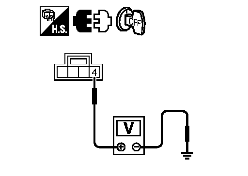2. Check voltage between remote keyless entry receiver connector M15 terminal 4 and ground.