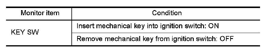Check key switch ("KEY SW") in "DATA MONITOR" mode with CONSULT-III.
