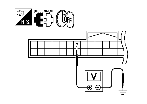 3. Check voltage between key switch and ignition knob switch harness connector M49 terminal 2 and ground.