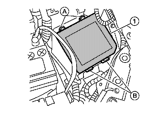 3. Lift up the IPDM E/R (1) while pushing and opening pawls (A) or