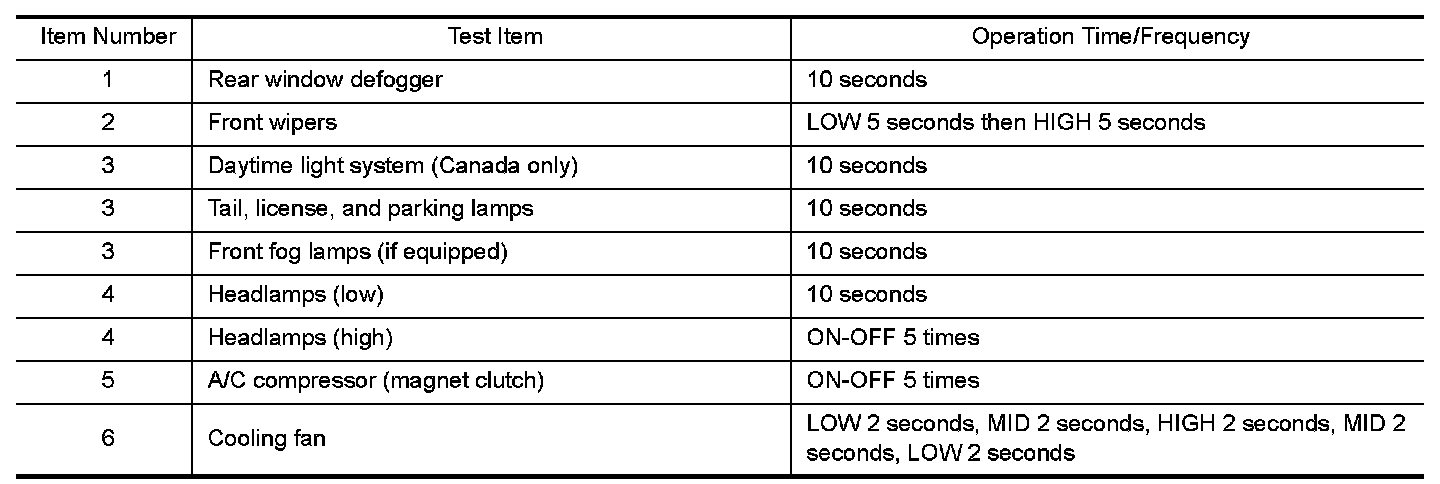 - In auto active test mode, operation inspection can be performed when IPDM E/R sends a drive signal to the following systems: