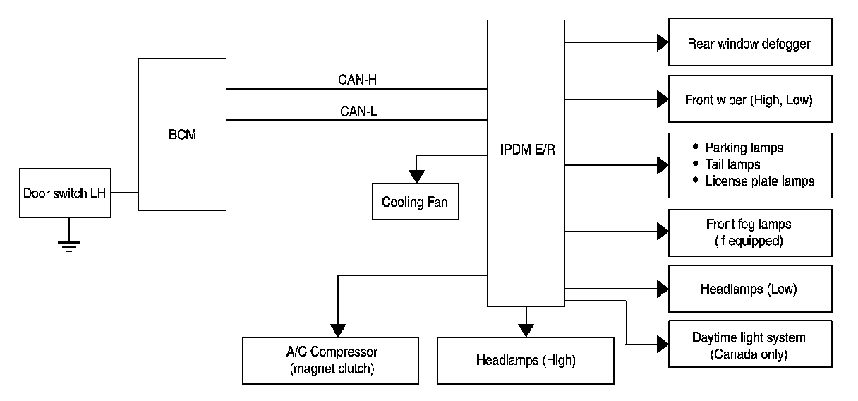 - IPDM E/R actuates auto active test mode when it receives door switch signal from BCM via CAN communication line. Therefore, when auto active test mode is activated successfully, CAN communication between