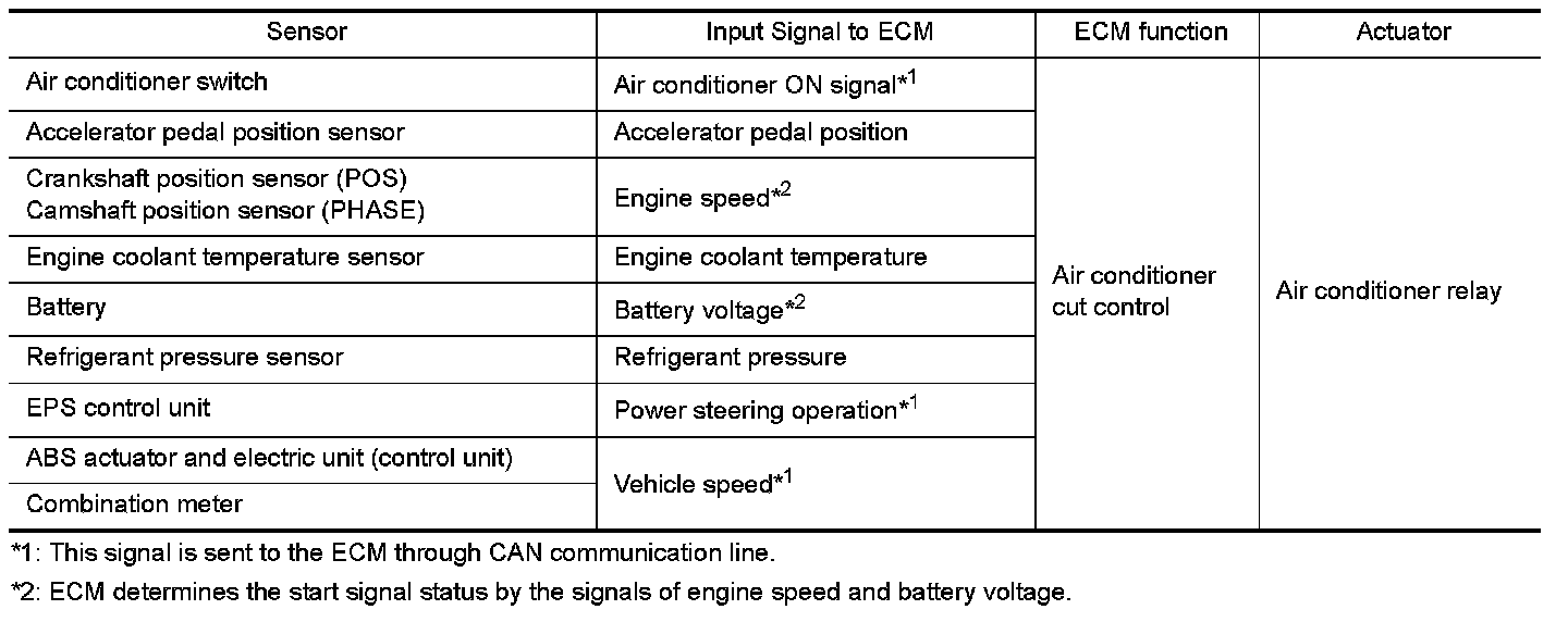 Input/Output Signal Chart Air Conditioning Cut Control (For California)