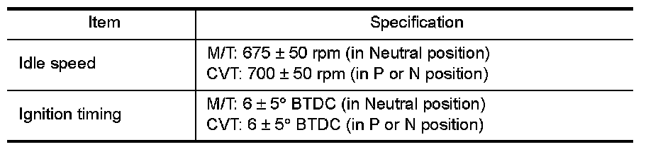 - Idle speed or ignition timing is out of specification.