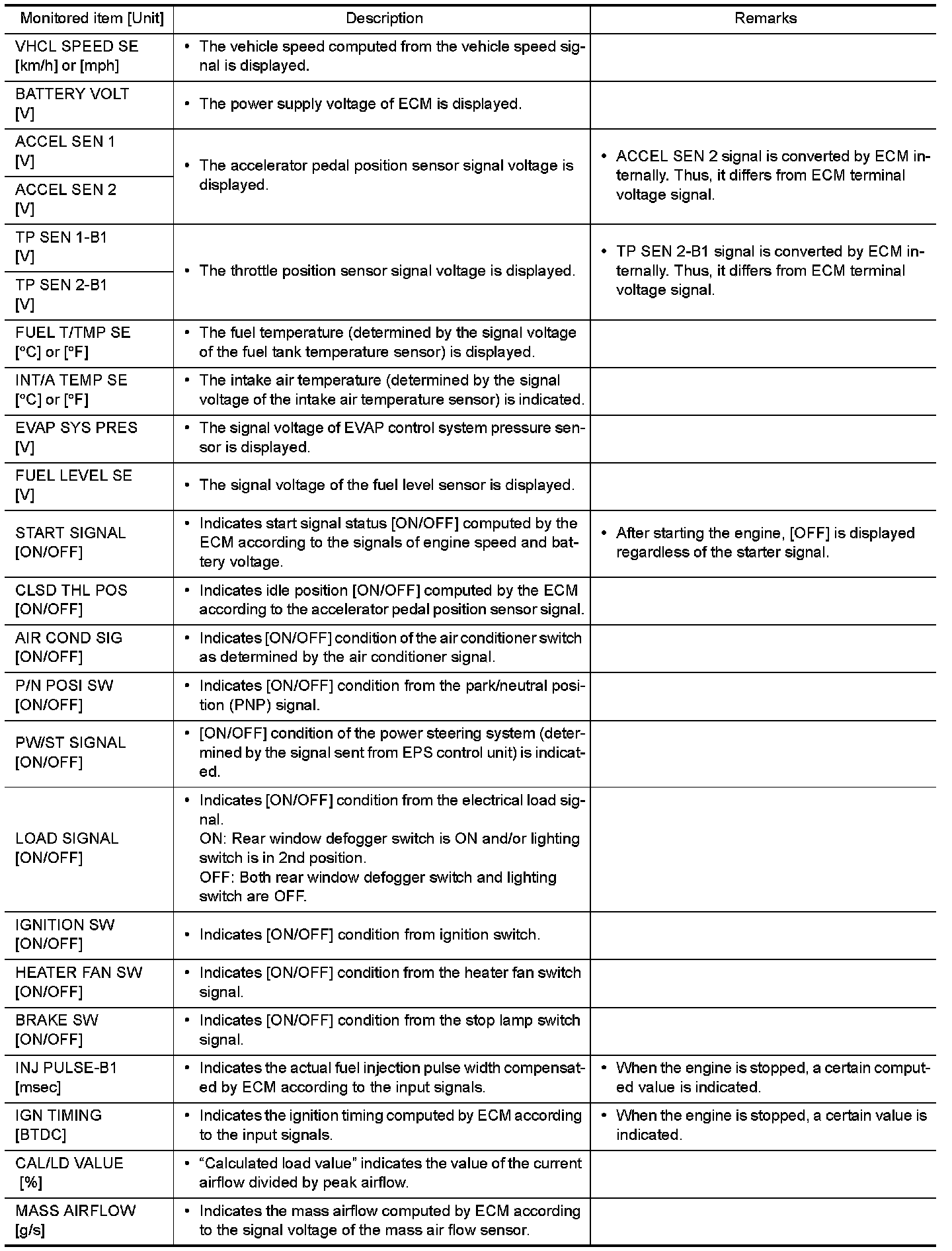 - If "TIME" is neither "0" nor "1t", the DTC occurred in the past and ECM shows the number of times the vehicle has been driven since the last detection of the DTC.