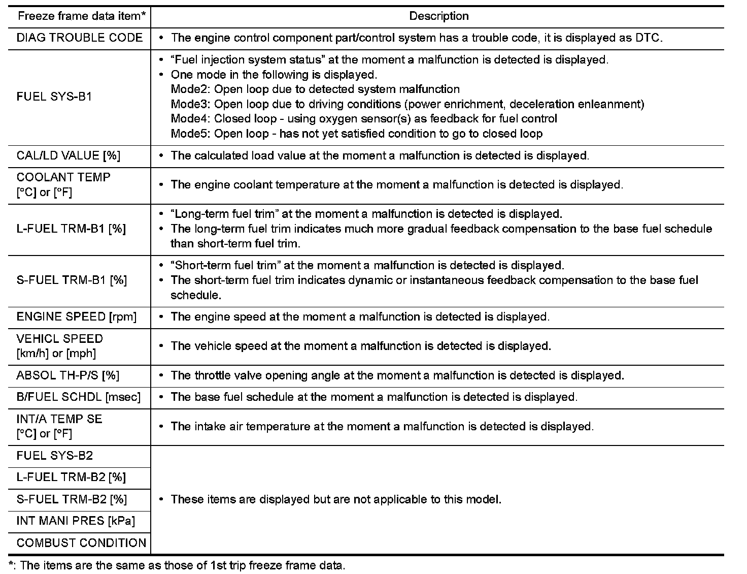 Freeze Frame Data and 1st Trip Freeze Frame Data