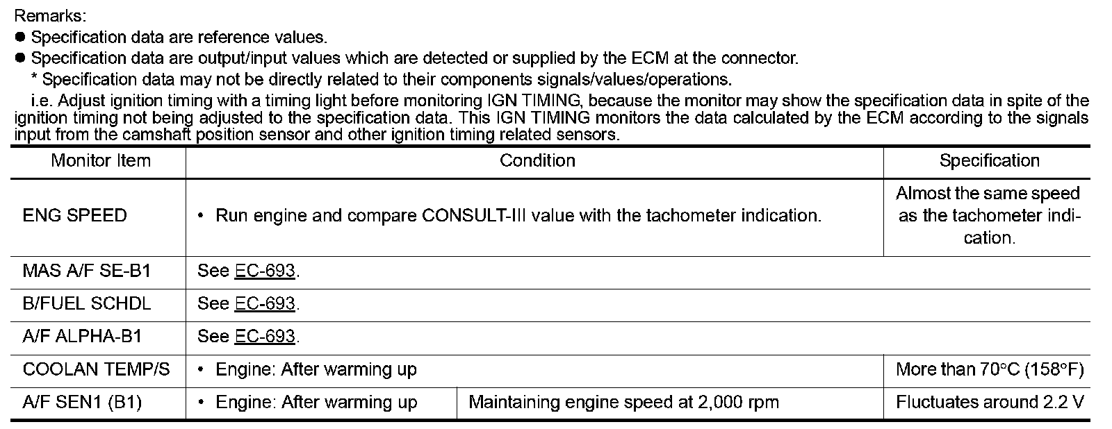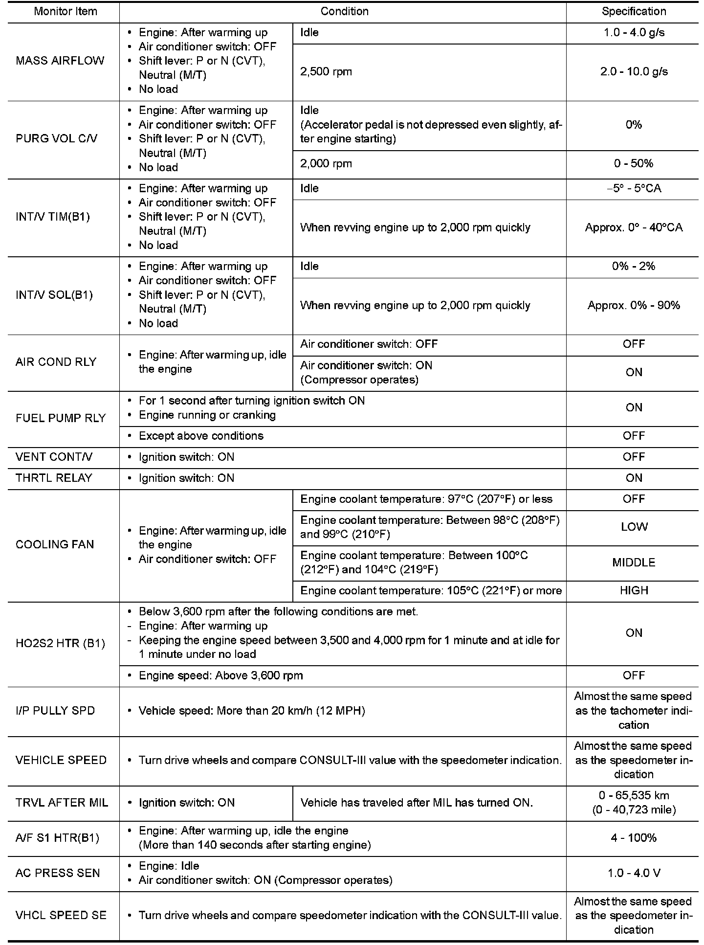 CONSULT-III Reference Value In Data Monitor (Except For California)