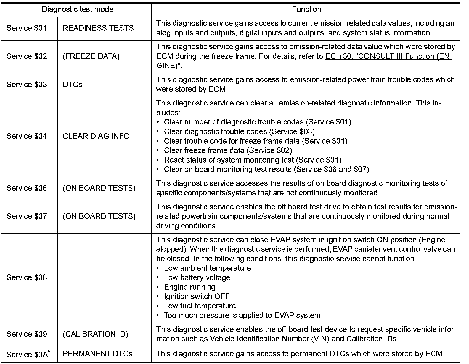 NOTE: *: Service $0A is not applied for regions where it is not mandated.