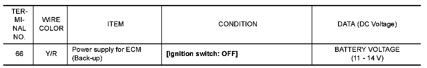 Do not use ECM ground terminals when measuring input/output voltage. Doing so may result in damage to the ECM's transistor. Use a ground other than ECM terminals, such as the ground.