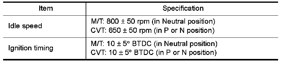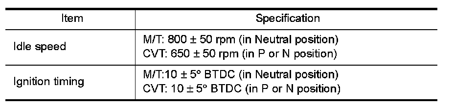 - Selector lever position: P or N (CVT), Neutral (M/T)