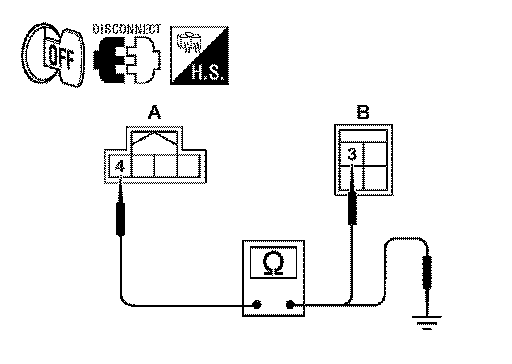 3. Check continuity between CVT shift selector connector M38 (A) terminal 4 and stop lamp switch connector E60 (B) terminal 3.