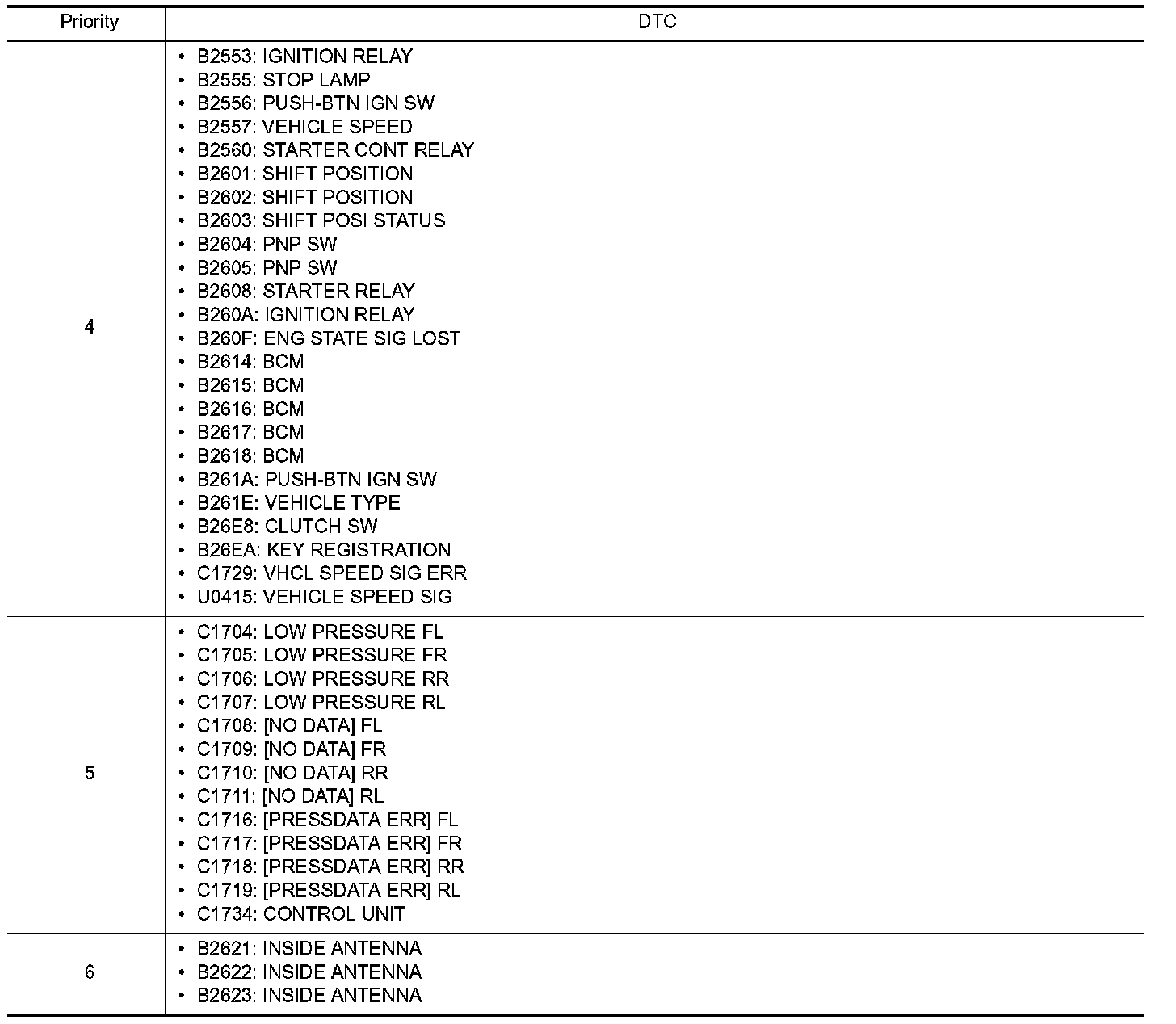 DTC Inspection Priority Chart