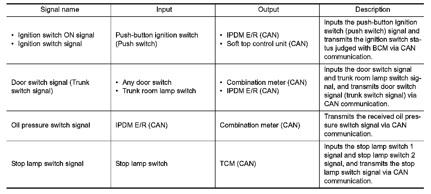 Signal transmission function list