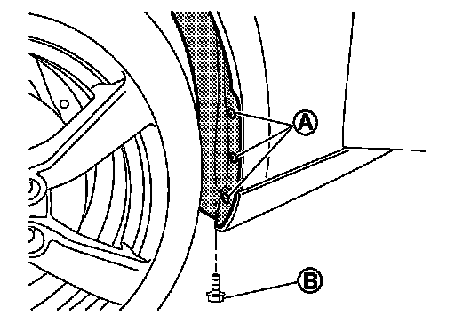 3.Remove fender protectors (rear side) fixing screws (A) and bolt (B).