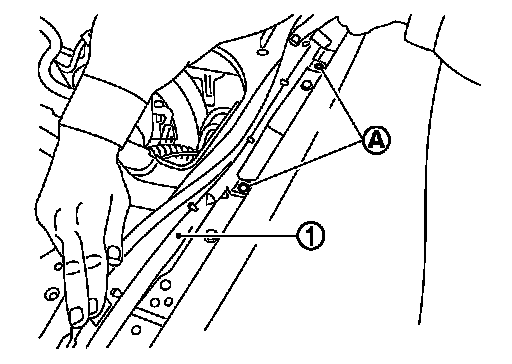 4.Remove clips (A) of hood seal (side) (1).