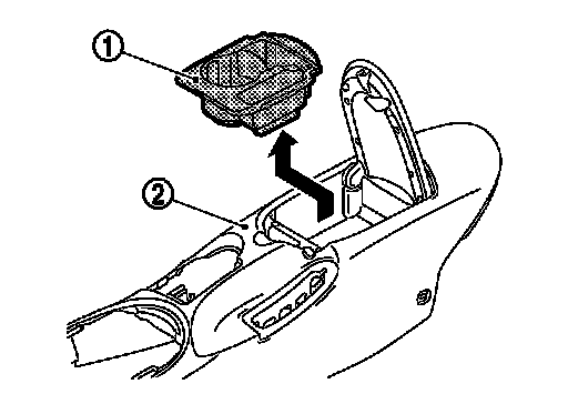 2.Pull up console tray assembly (1), and then remove console tray assembly from center console assembly (2).