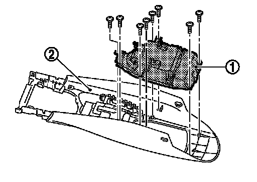 1.Remove console pocket assembly (1) fixing screws.