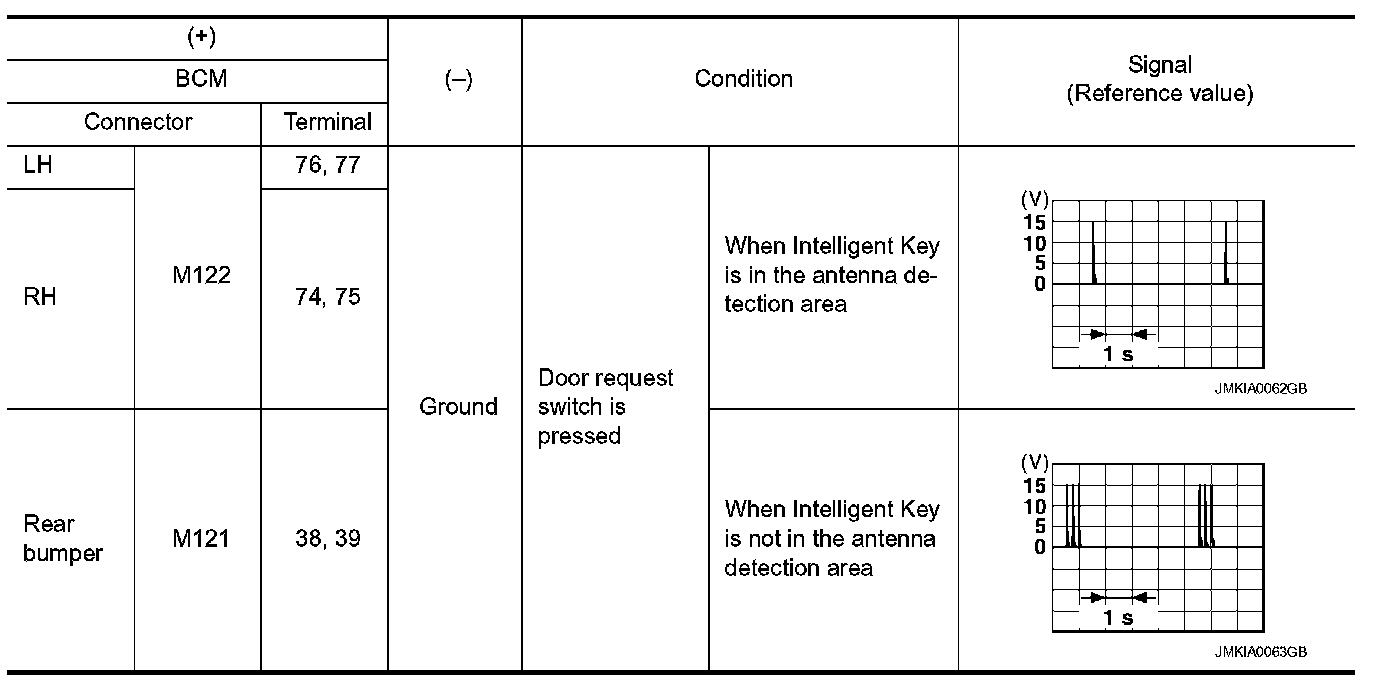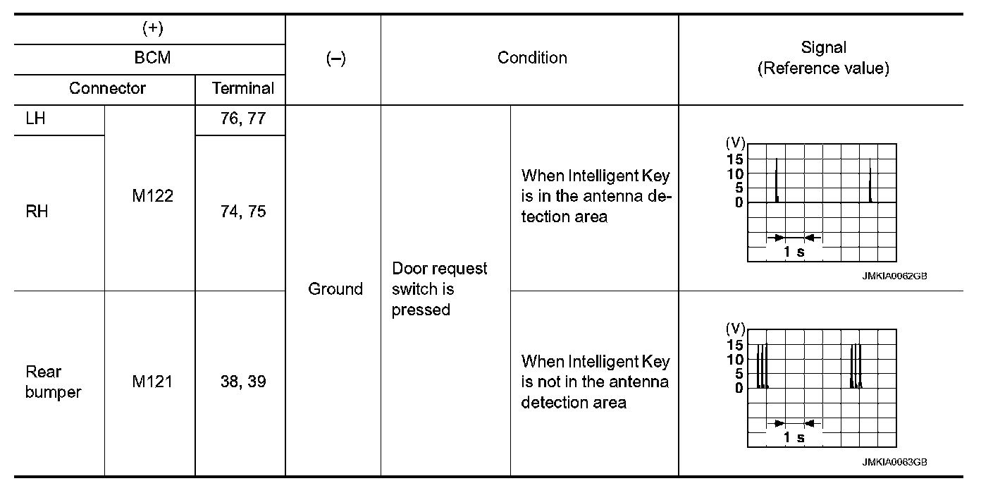 2.Check signal between BCM harness connector and ground using oscilloscope.