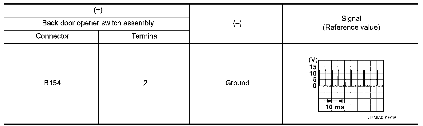 3.Check signal between back door opener switch assembly harness connector and ground using oscilloscope.